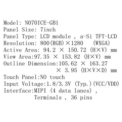 | मॉडल संख्या: | N070ICE-GB1 |
